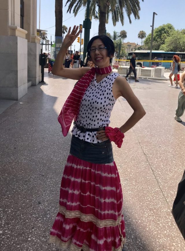 今年のもも衣「フラメンコデニム」シリーズ。普段着の感覚で着こなしたい。とはいえマラガで、だろうけど(笑)日本ではドン引き?