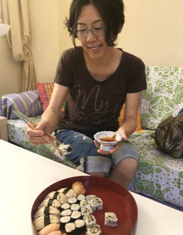 打合せでYukiさん宅へお邪魔したら、なんとお寿司を作っておられた。おいしそ〜。で、ちょっとだけつまみ食い(笑)。この後お客様がみえるとのこと。