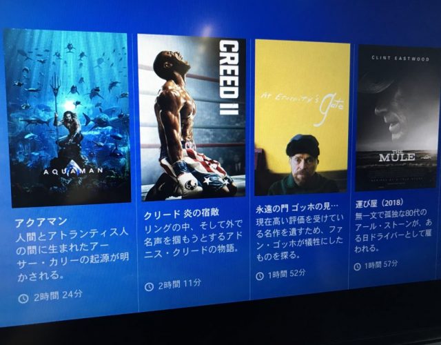 「アクアマン」「永遠の門(ゴッボ)」「運び屋」・・・なんだか贅沢な時間。日本ではぜひ「アラジン」と「新聞記者」をみたいもの。父を誘ってみようかなぁ。