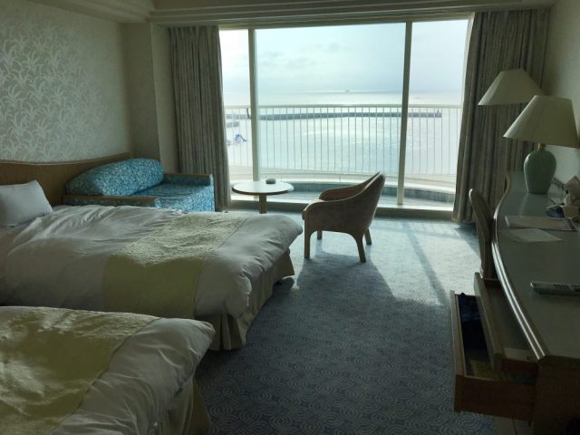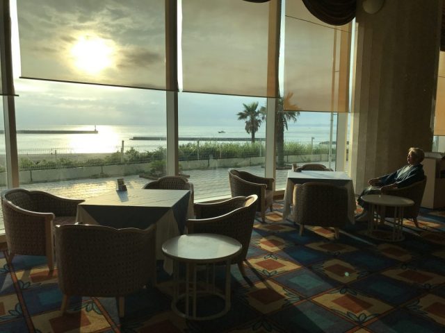 曇り空だけど、暑くないのでもう感謝。海の見える明るい部屋、テラスつき。まずはさっそくスペインから持ち込んだ白ワインで乾杯。
