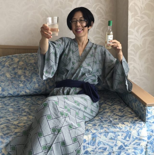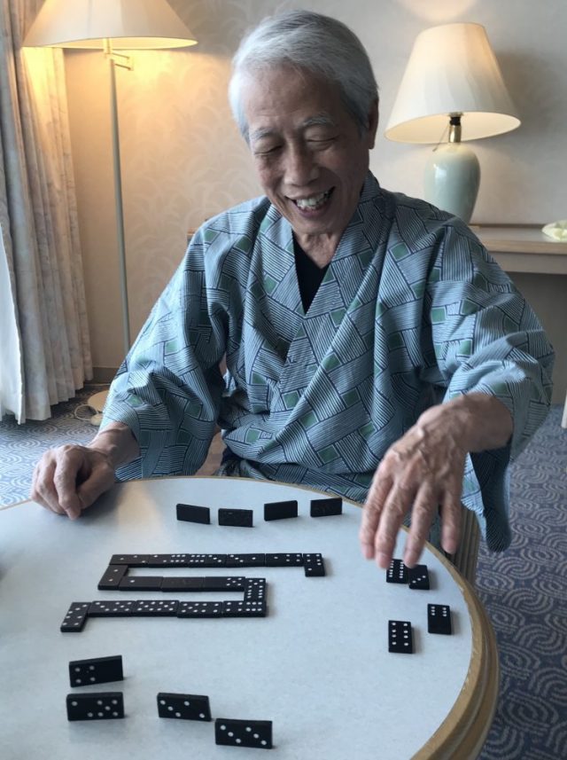 さっそく浴衣に着替え、スペインのビンゴゲームを始める。2人だけどコマは三等分。父の左側には「母」がいるのだ。だから3人でゲーム。