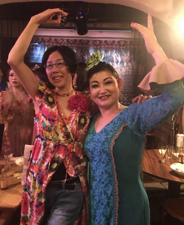 日本のフラメンコを初めて見た。私の住むマラガとは一味違うステージ。特にお客さん(笑)お行儀がいい。あっという間の2ステージ。最後は「セビジャーナス」でしめ。