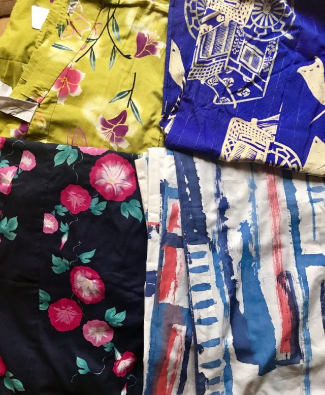 「あの〜、この他に何がいるんでしょう?(カタコト)」「あとは帯です」などという会話が。さらに格安着物&浴衣コーナーへ移動し、2着をゲット。