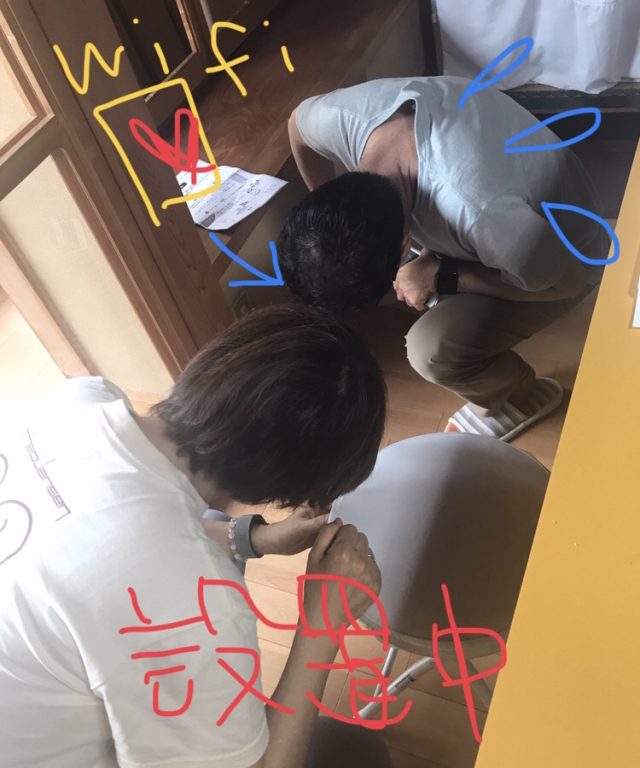 謎の言葉をつぶやきながら後藤kk、ルーターに向かって何やら設定。さらに。奥の和室へと中継器を持って移動。