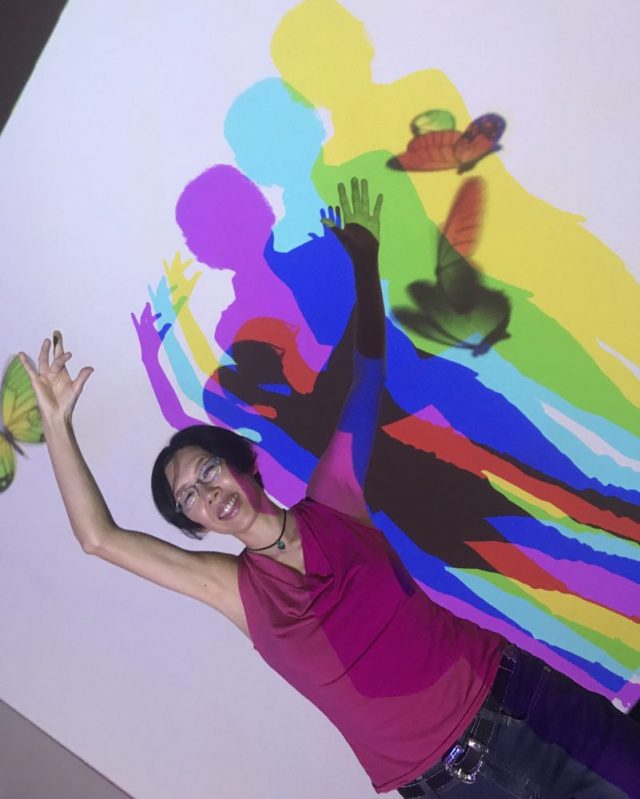 体育系の私はすべて全力!蝶を追いかけ、ボールを蹴り上げ、ロボットとなって暴れ回る。スクリーンに向かって声を上げながら大騒ぎ。