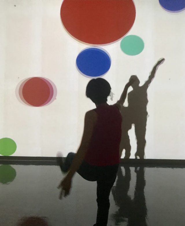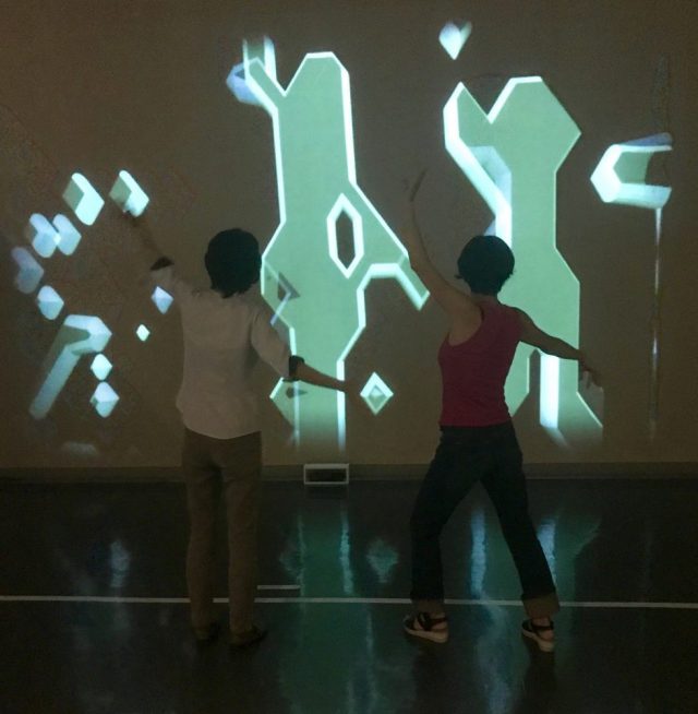 基本的に「動いて」楽しむアート。なので「踊る」「跳ねる」「投げる」「蹴り上げる」「腕を振り回す」・・・など全身運動。