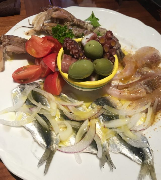 続く「魚介類の盛合せ」これが至福の味!一つ一つの素材の味を楽しんでいたら、あっという間にビールがなくなる。