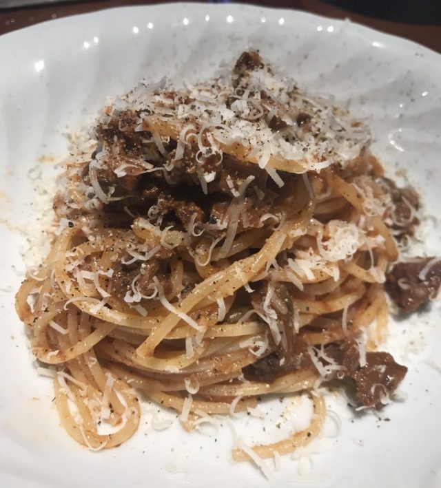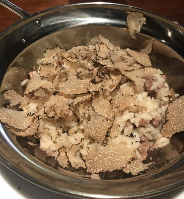 いつのまにか黒ビールや赤ワインへとなだれ込み、後半戦の「パスタ」「炊き上げるリゾット&トリュフ」に突入。おいしい〜。さすがにお腹いっぱい。