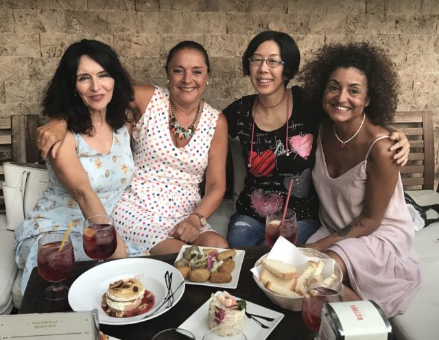 マラガ到着初日から「女子会」。いきなり(笑)ダンス教室の仲間とソファ席でくつろぎながらスペイン料理。オーレ!