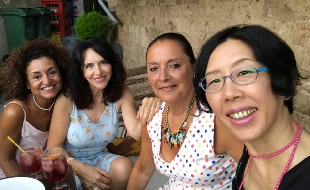 エリ、エレナ、ロサ、楽しい時間を分かち合ってくれてありがとう!スペイン到着初日からハグとキス。変わらぬ友情に感謝しています。