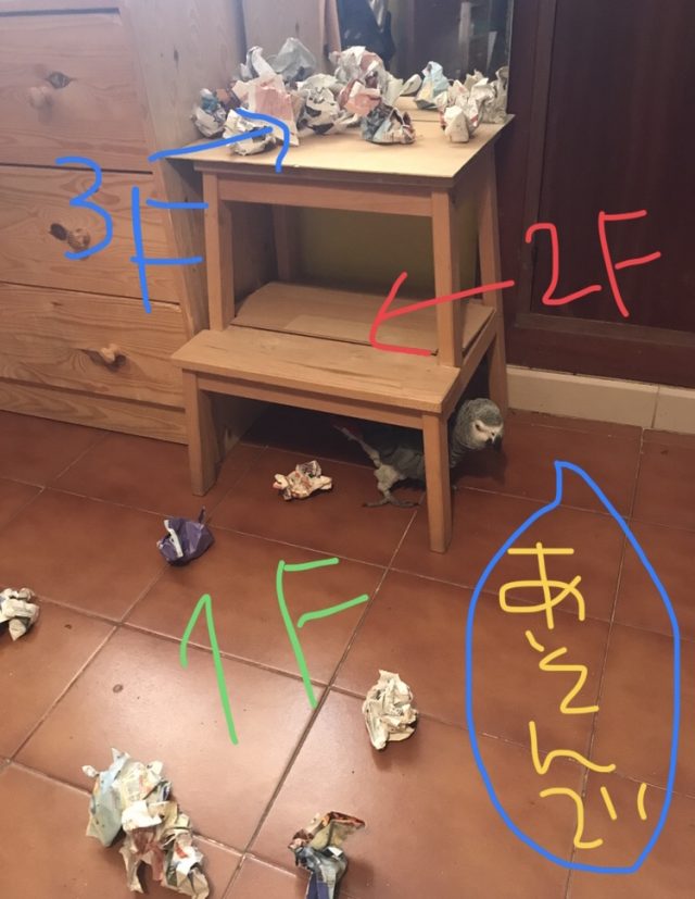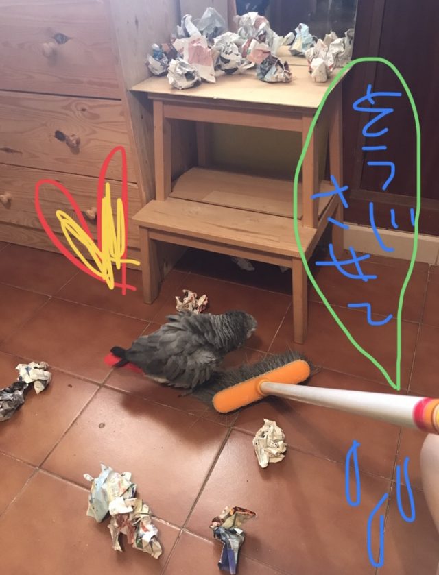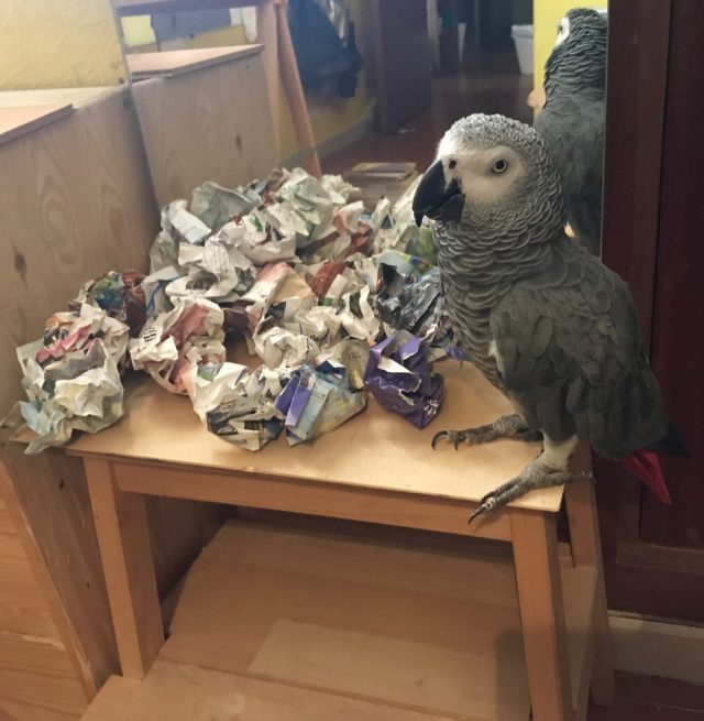 ことを選択したのだから前進あるのみ。そんな事を思いながら、原稿や資料など「紙類」を大処分。そこへ現れたオウム。紙の上を歩いたり破ったり。