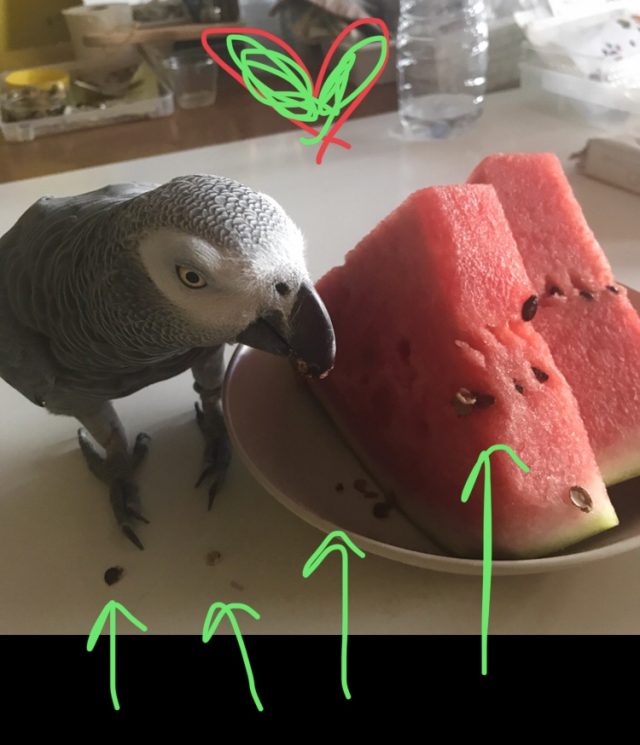 めざすものが違うので、取り合うこともなし。モロッコ産のスイカ、今が旬です。ぜひお試しを!