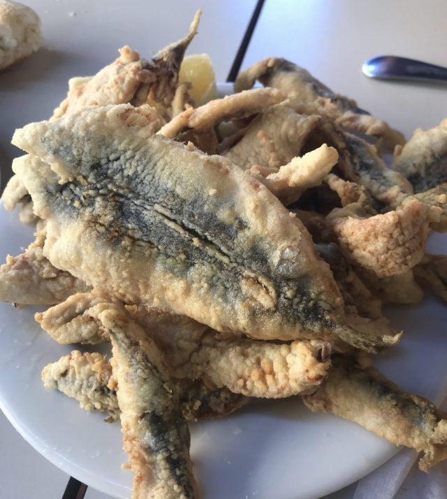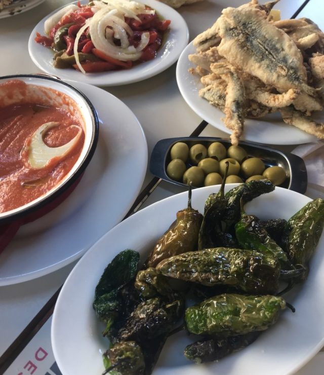 まずはフェリアに乾杯!食べる食べる。これ全てハーフポーション。驚きの量。4人で8皿。豪快ランチ。熱風テラルも去り、テラス席で涼みながら。