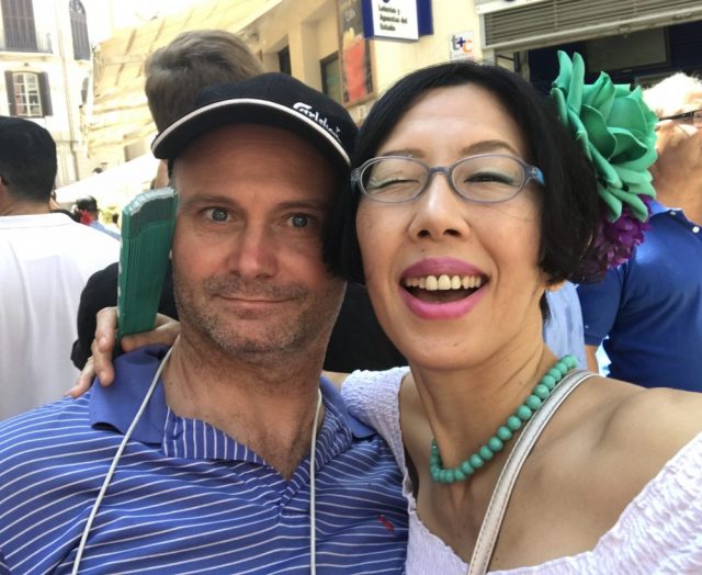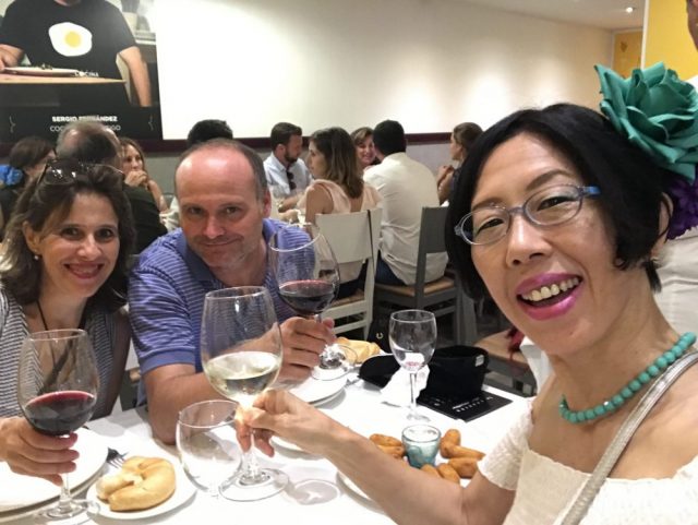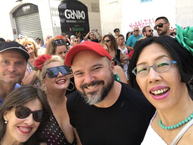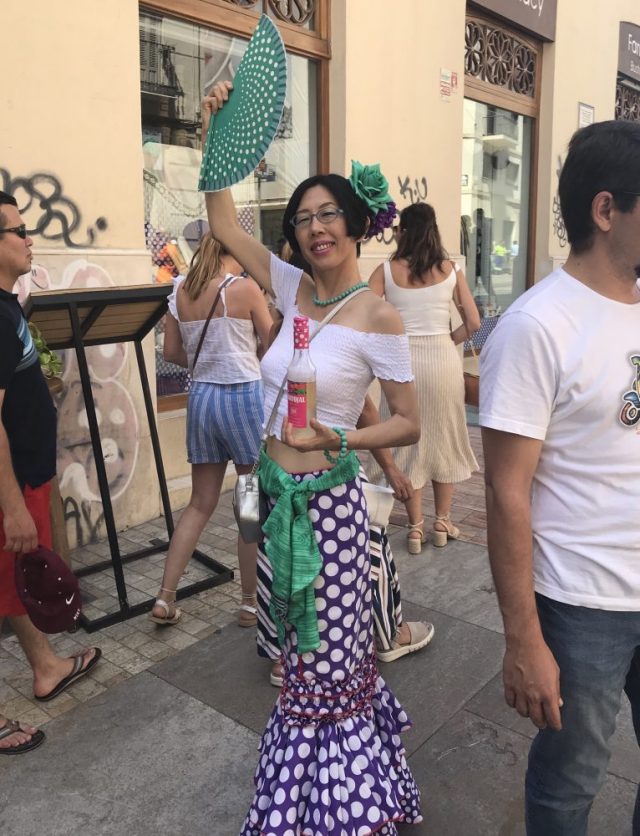 この日はやっと念願の「フラメンコ衣装」でフェリアへ。20年以上マラガに住んでいながら、実は初めて(涙)うれしい〜。