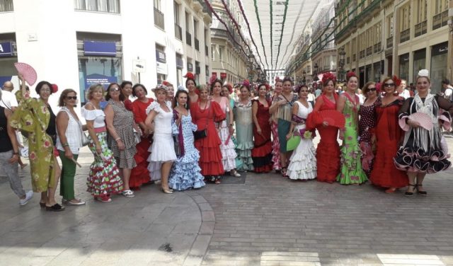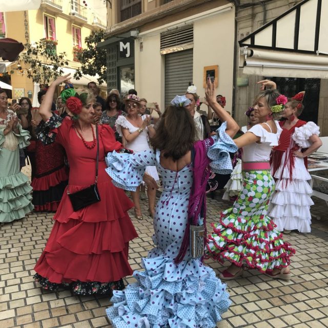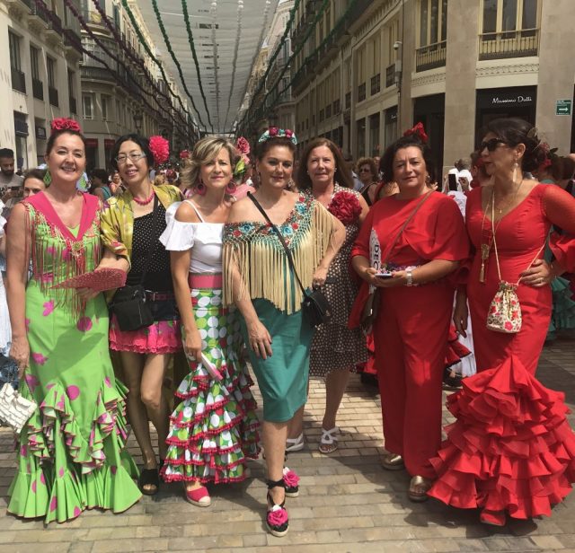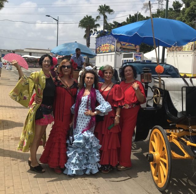 【フェリアレポート・8】セビジャーナス教室の先生&仲間とフェリアへ。まずはセントロのラリオス通りに集合。およそ40名が一堂に。壮観。オーレ!