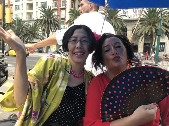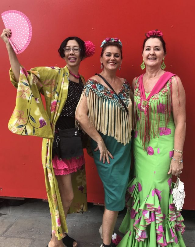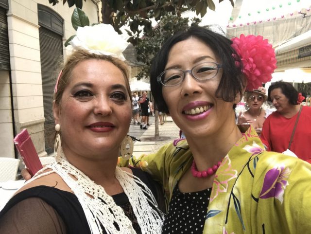 みなさんフラメンコドレスを着なれているから、動きが自然で美しい〜。そんな中、私は浴衣スタイルで。アンダルシアと日本の文化が、今一つに!