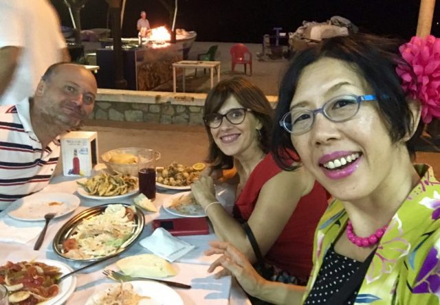 セビジャーナス教室の仲間と「8時間耐久フェリア」の後は、全身筋肉痛のままチリンギート(海岸通りの魚介類レストラン)へ。