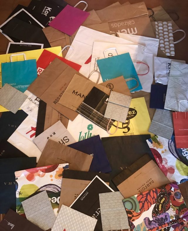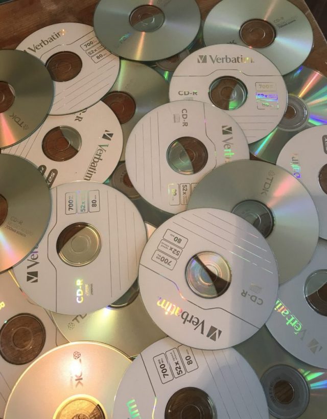 さて。先週の「大整理&大処分」で、どばっと出た「紙袋」と「CD」。これを「アート」に使えないものかしら。