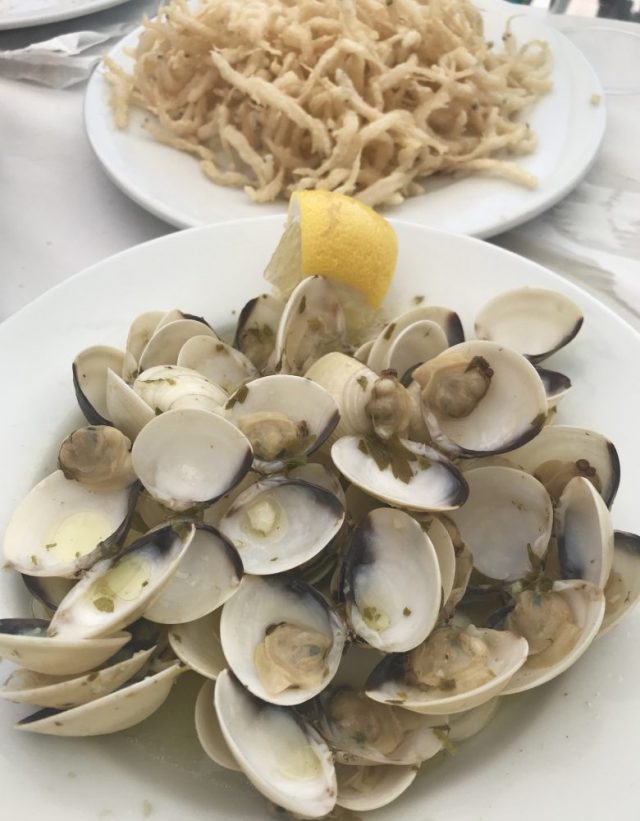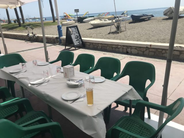 今日はハビ吉ファミリーと「魚介類ランチ」。マドリッドやグラナダから集まるという事で、海岸通りのテラス席を予約。私は一番乗りでテーブルの確認。