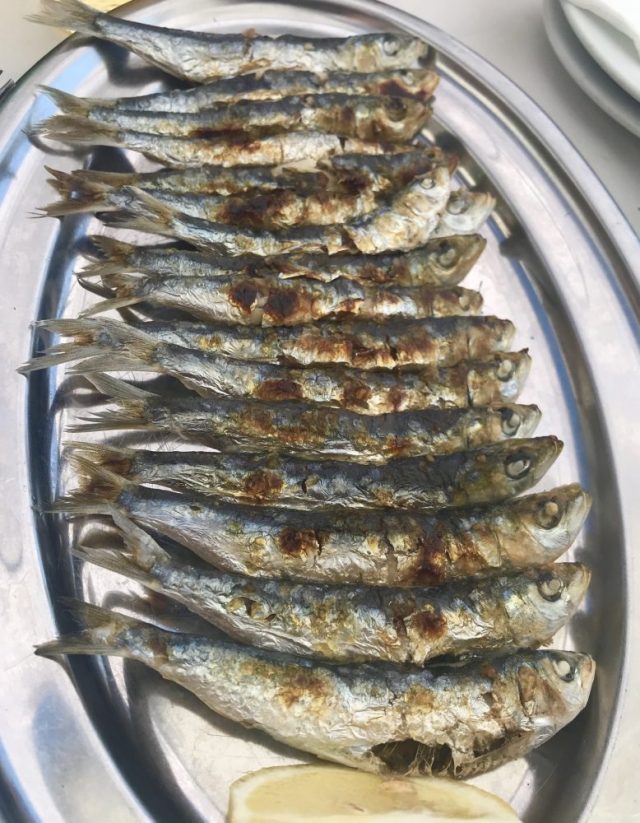 久しぶりの再会に胸が熱くなる。まずは焼きイワシでスタート。王道。いつもの調子で、さっそく熱々イワシに手を伸ばしたら