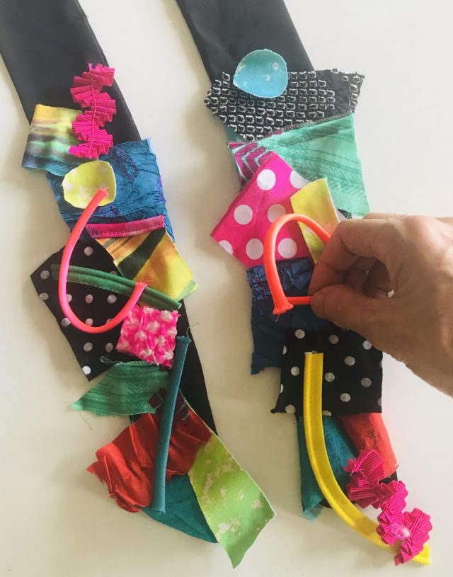 早朝から「ハギレ」で「コラージュ」。紙やキャンバス地と違い、この後縫わねばならない(笑)当たり前だけど。その時間が待てない〜。