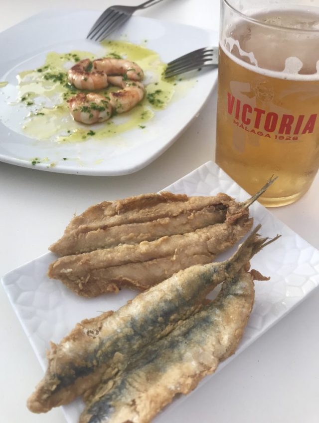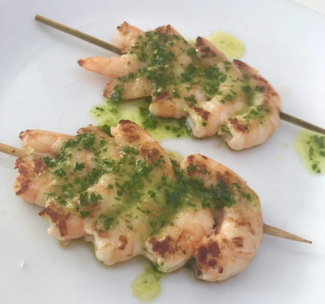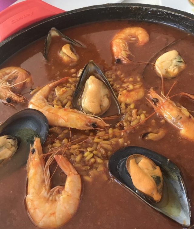 まずは魚のフライ、肉団子、エビの串焼きなどをつまみながら近況報告。どれもおいしい〜。ノンストップでおしゃべりしていると、待ちに待ったパエジャが登場!