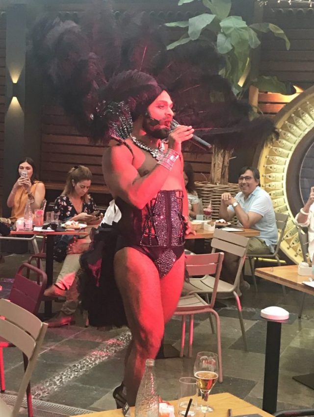 私たち女3人組は、彼の腕や腿のたくましさに圧倒されていた。そして、美しさにも。英語とスペイン語まじりのショーは、そこにいたみんなを幸せな気持ちにしてくれた。