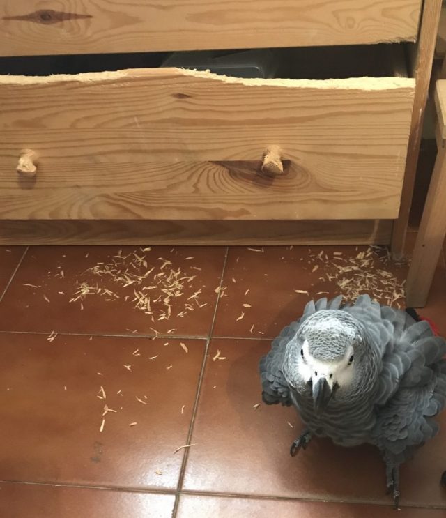 普段なら、オウムが空腹に耐えかねて大騒ぎするところ。なのに、うちの中はシーンと静まり返っている。というか、何となくさっきからガタゴトと音はしていた。
