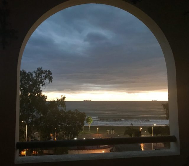 今日のクルーズ船は、ぶ厚い雲の下。マラガ港を出て、次はどの街へ向かうのだろう。