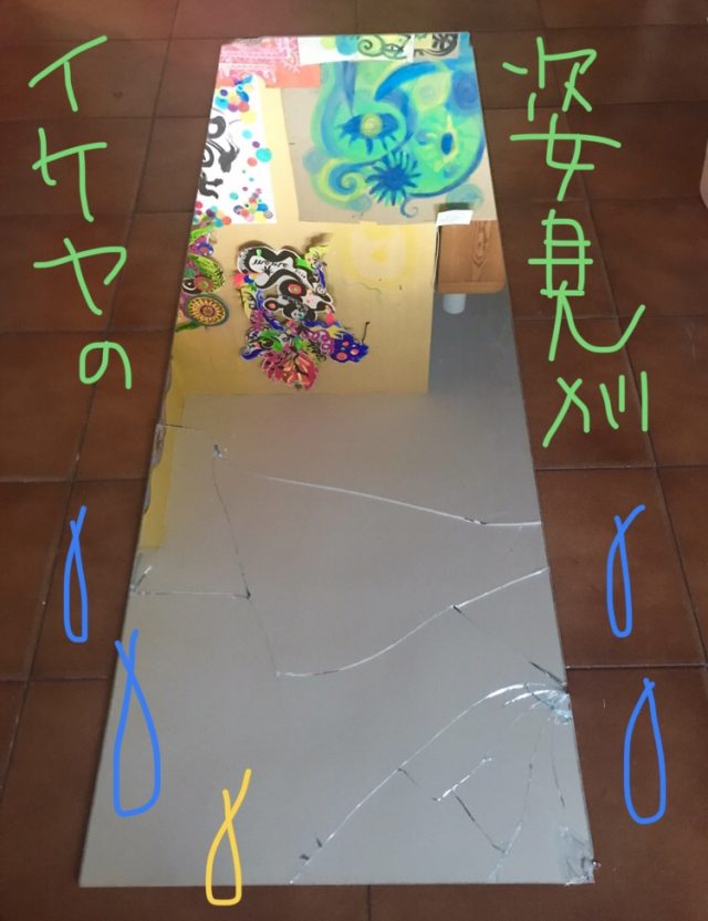 寝室の壁に取り付けられていたイケヤの姿見が、無残にも床に落ちていた。あたりまえだが、もう救いようのないほどバキバキに割れている。