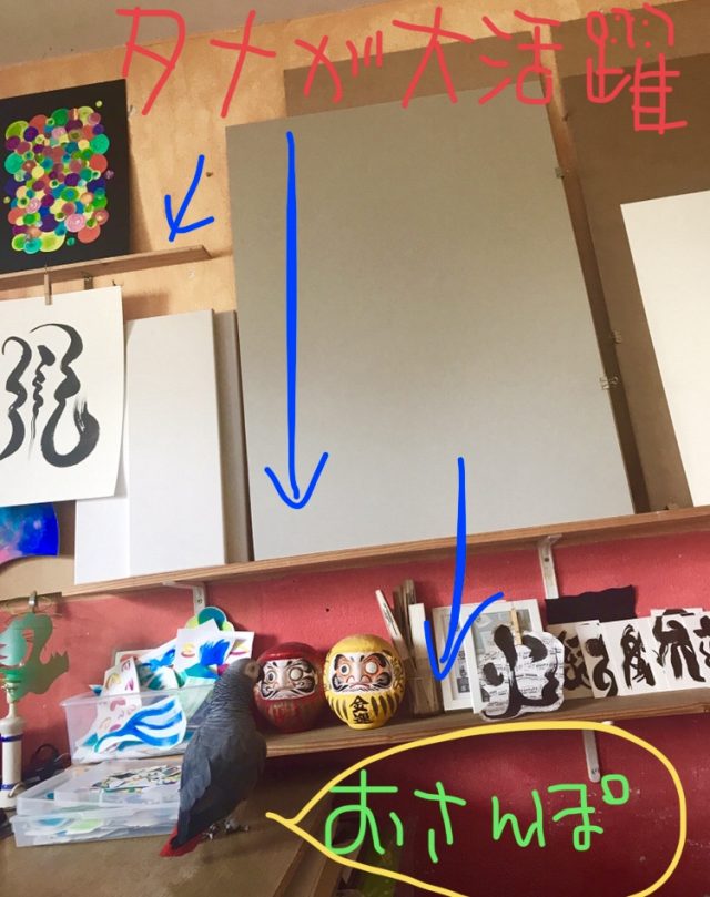 しっかりと叱り、しばらく鳥かごへ。でも「ストッパーかじりと鏡崩壊の関連性」が、きっとわからなだろうなぁ。はあぁ。
