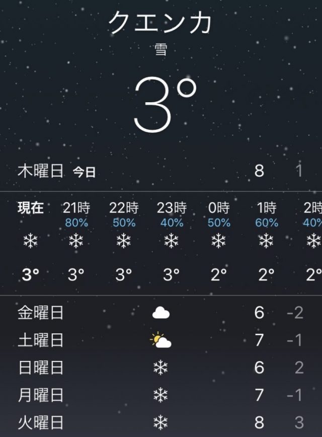 ★11月末に計画中の「クエンカ旅行」。今週もうすでに雪が!はたして耐えられるのか。