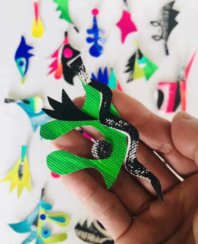 その「生命力」を表現したかった。いろいろな色と形で。もう楽しくって(笑)問題はオウムのはばたきだけ。