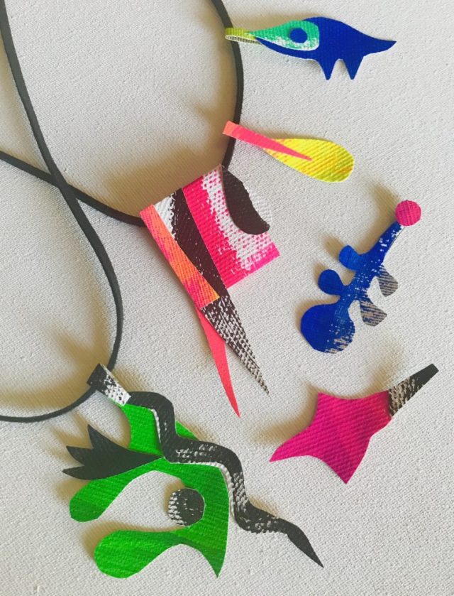 「ネックレスコラージュアート」は、1つ1つの作品が小さい。とはいえ