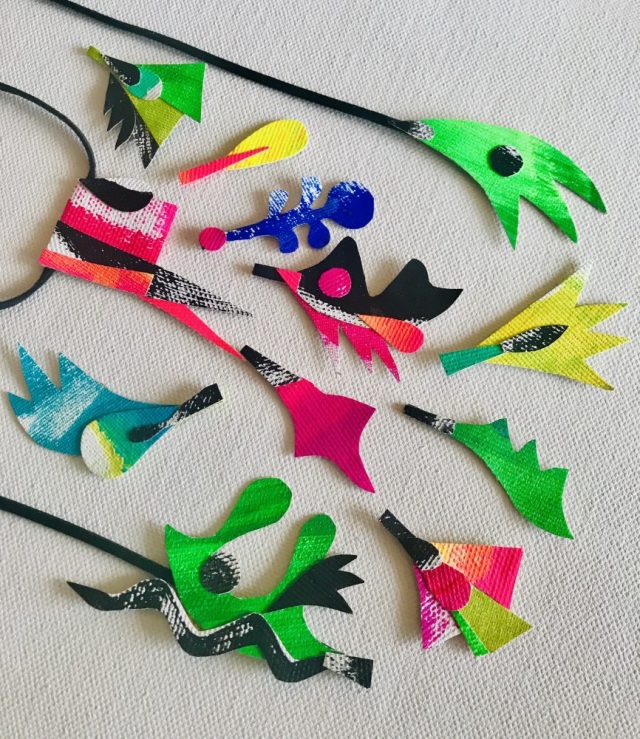いよいよ「ネックレスコラージュアート」も今日で最後。ここまで来て、身につけると風に舞って裏面が丸見えのため