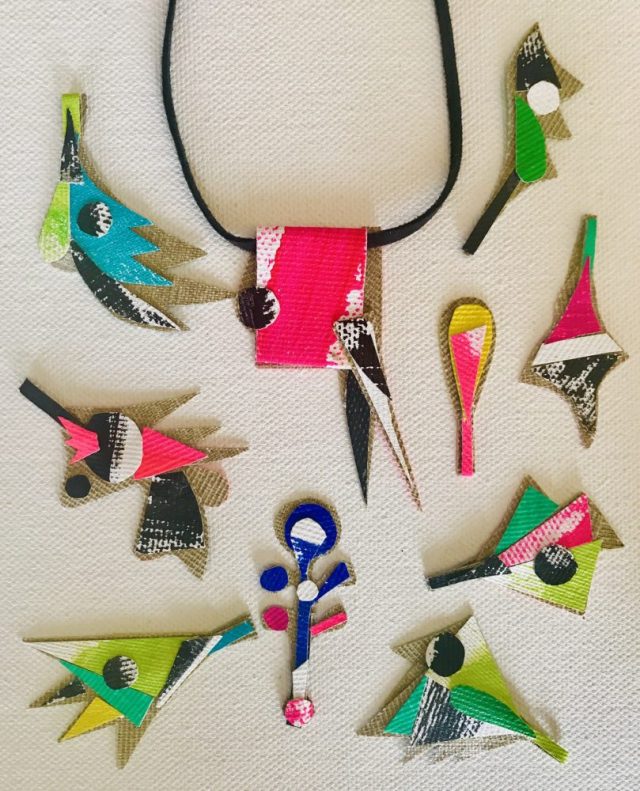 明日からサイズを上げて「ブローチコラージュアート」を始めよう!アイデアがふつふつと。着こなしも考えつつ。