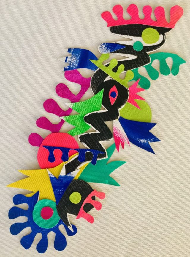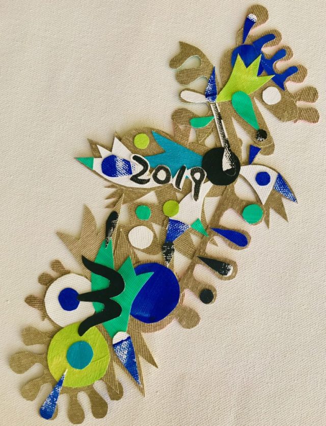 今日から新しく「ブローチアート」をスタート。今期は全てコラージュ。私の名前「Momo」を1つの作品にしてみた。これで28センチ。大きい(笑)