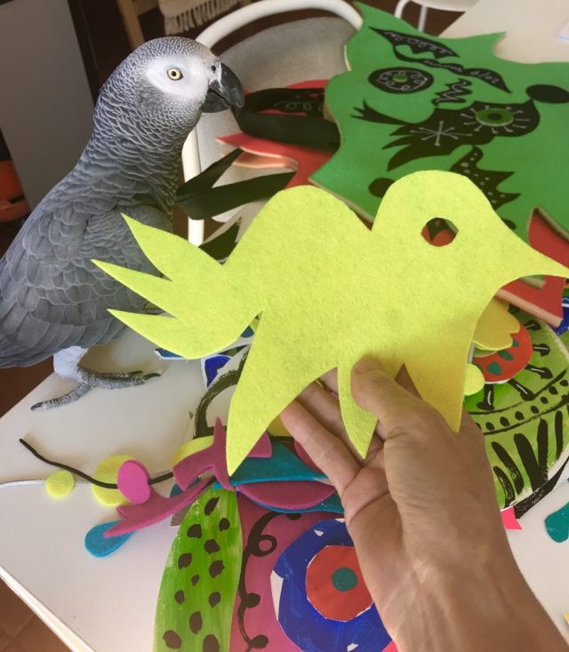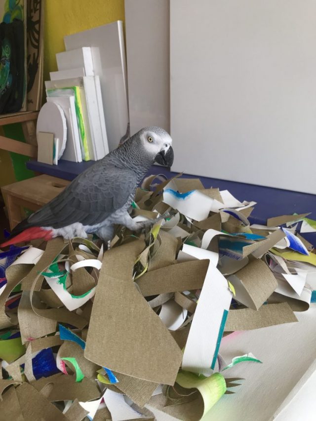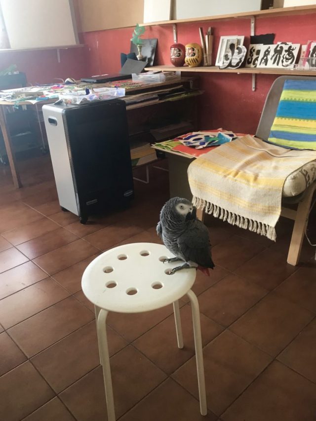 というわけで、作業場の写真。オウムを撮ろうとしたのではなく