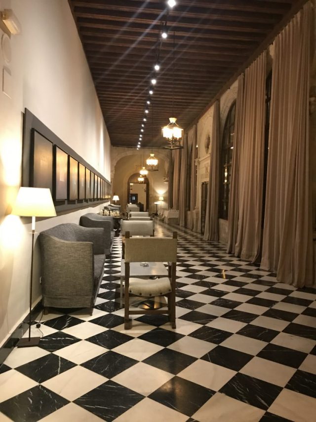 パラドールの中に一歩足を踏み入れると、荘厳な「回廊と中庭」が出迎えてくれる。16世紀に修道院として使われていた建物。どこを見ても歴史感たっぷり。