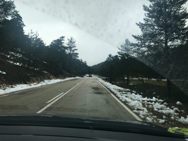 アルバラシンへ向かって、クエンカの町を出発。山道を1時間も進むと、アイフォーンを見ていたハビ吉が、いきなり声を上げた。
