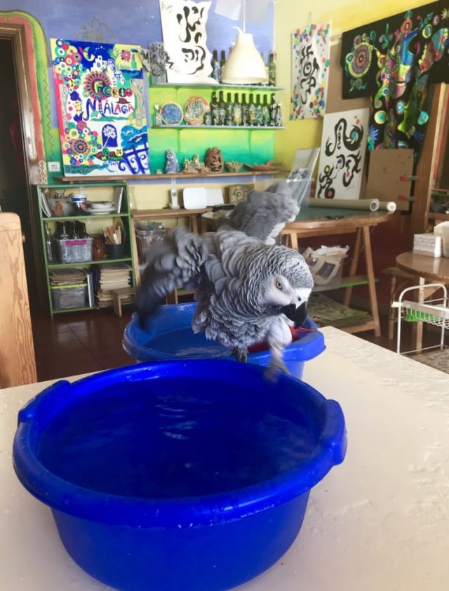 マラガに着いたら、春だった。20度。晴天。一番最初にしたのはもちろん「オウムを鳥かごから出す」こと。全身から「怒」のオーラを放っているので