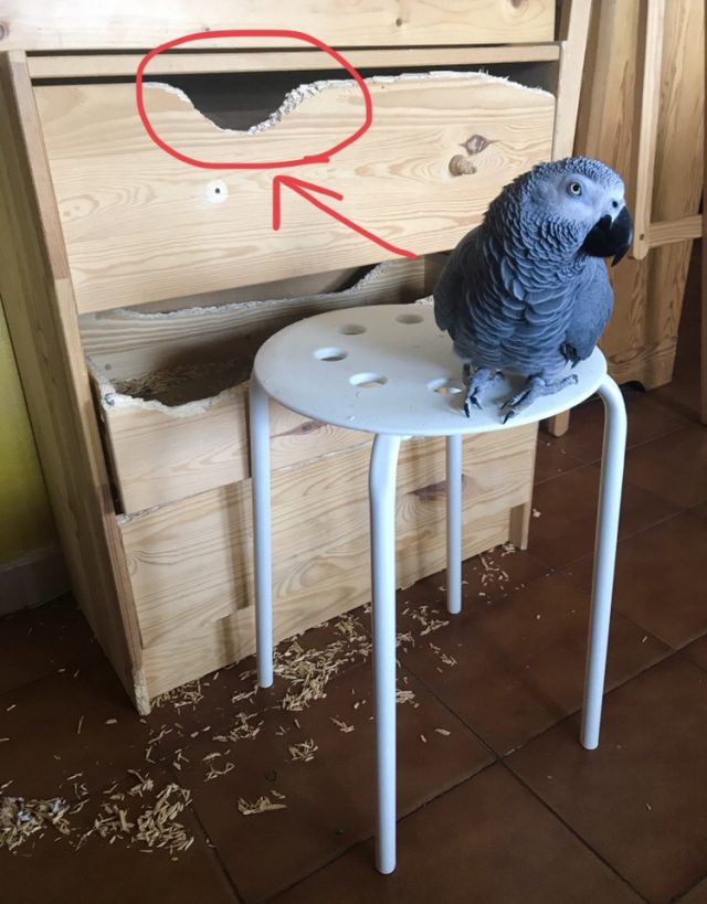 ものすごい二択。作ってるか、忘年会か(笑)。その横で、オウムも「引き出しアート」にひたすら取り組む。取り憑かれたように。これはもう