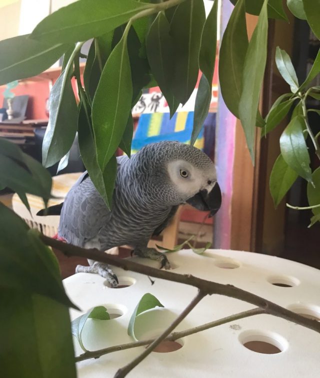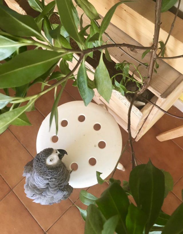 大興奮の私を、冷ややかに見つめるオウム。これがワンちゃんなら、ちぎれんばかりにしっぽを振って、一緒に大喜びしてくれるにちがいない。