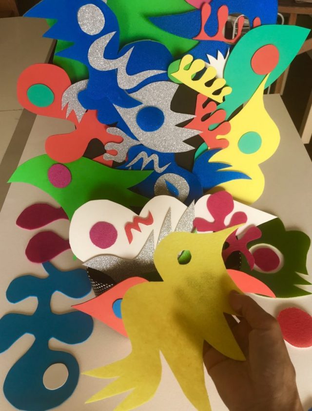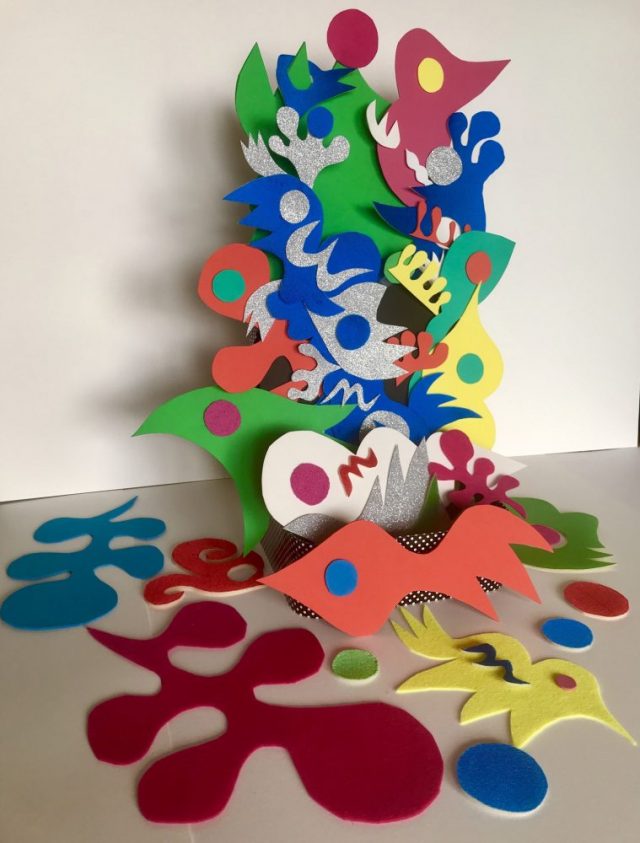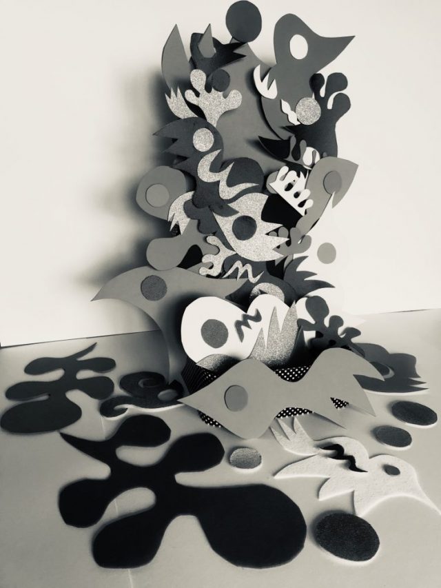 それも、立体がいい。どうしたらいいのか、しばらく考えていた。その時、目の前のコラージュにふと、目が止まった。