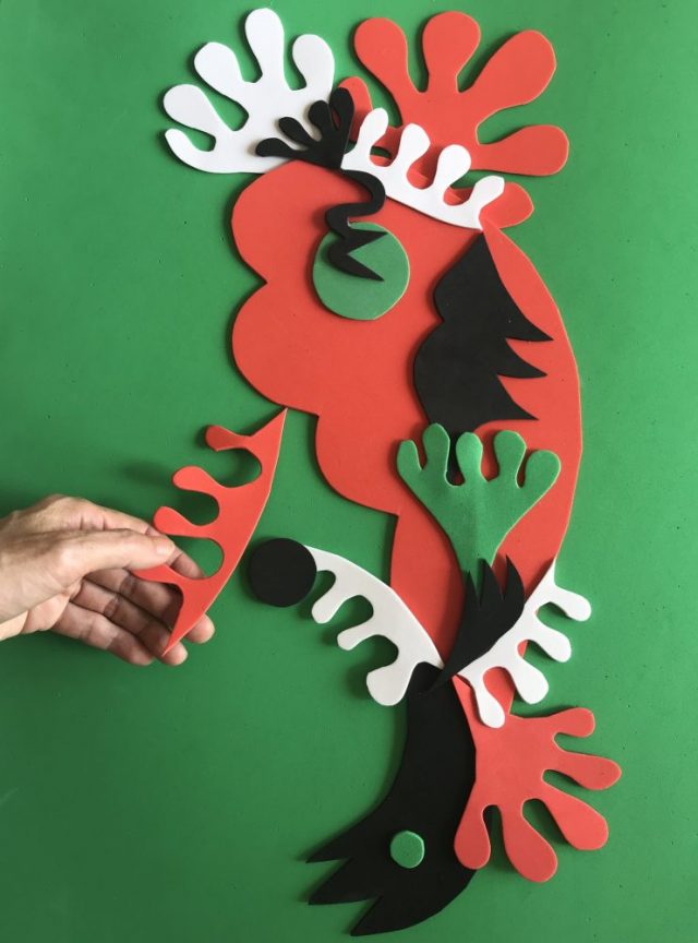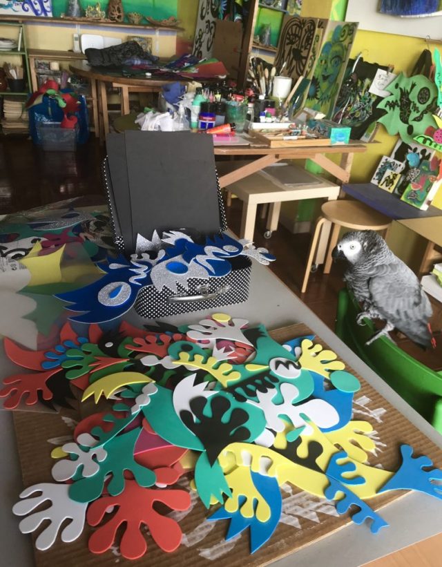 コラージュ制作は続く。午後にオウムが水浴びを始めたので、アトリエが水浸しに。セビジャーナスを聴きながらモップがけ。なにしろ明日はいよいよ
