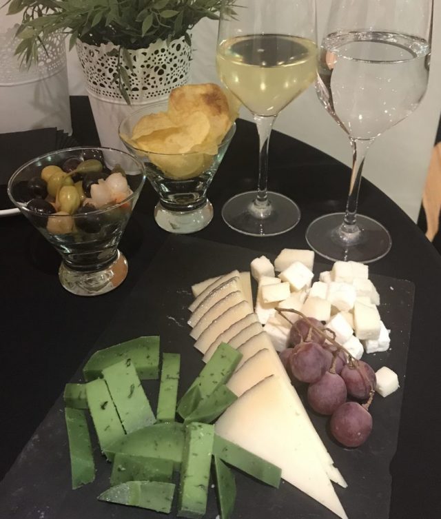 のだ(笑)テンション上がる〜。プレイベントだったため、軽食&ドリンクのサービスまで。おぉ〜。まずは白ワインで乾杯。