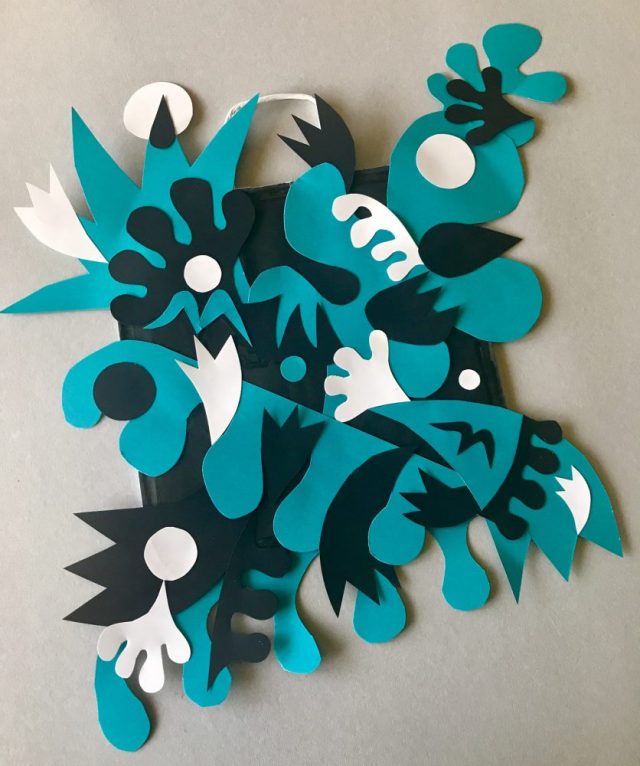 これも、ももコラージュアートの一つの特徴。早く元気になって制作に戻りたい(これは風邪前の作品)。ゴホゴホと咳をするたび