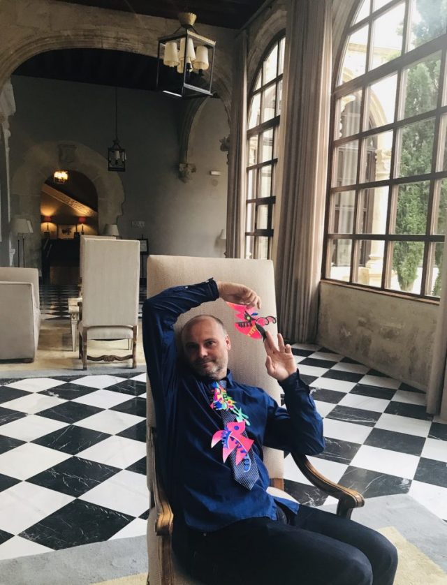 ハビ吉は1月、私は2月生まれ。二人とも同じ水瓶座。「ネクタイアート」撮影を通して、シーズンオフのパラドールは撮影にもってこい。の事がわかり