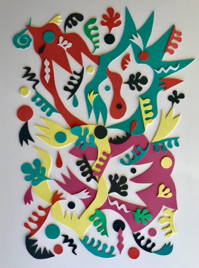 どんな向きからでも楽しめる、ももコラージュアート。見る人によって「見えるもの」が変わる。