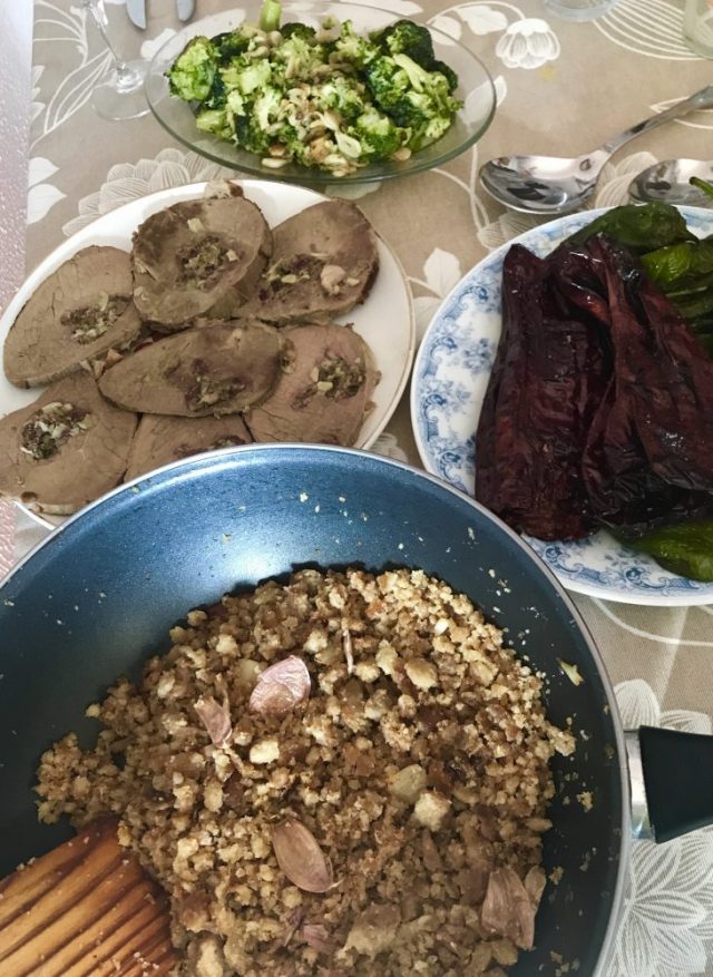と一緒に。なんとなく敬虔なテーブル(笑)叔父さんの手作りランチに、いきなり食欲が湧く。ドリンクは「水」のつもりが